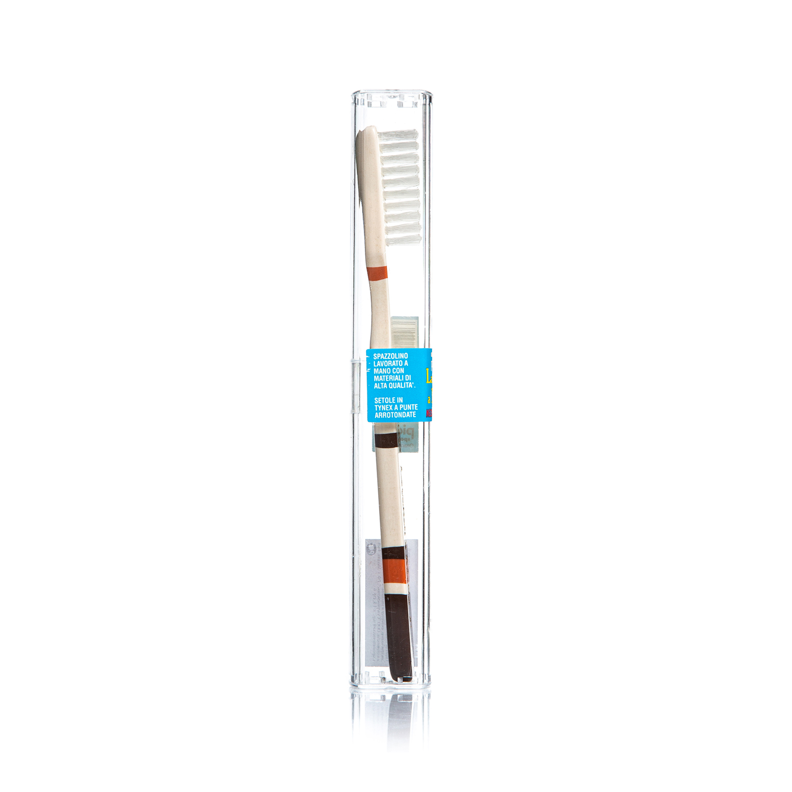 Гибкие щетинки средней жесткости с закругленными головками изготовлены из нейлона Tynex®. Они эффективно, но деликатно очищают эмаль от загрязнений и налета, являющегося причиной раздражения десен и повреждений зубов. Овальная головка зубной щетки повторяет форму челюстной дуги и облегчает процесс чистки, а слегка скошенная ручка из ацетилцеллюлозы обеспечивает удобство использования.