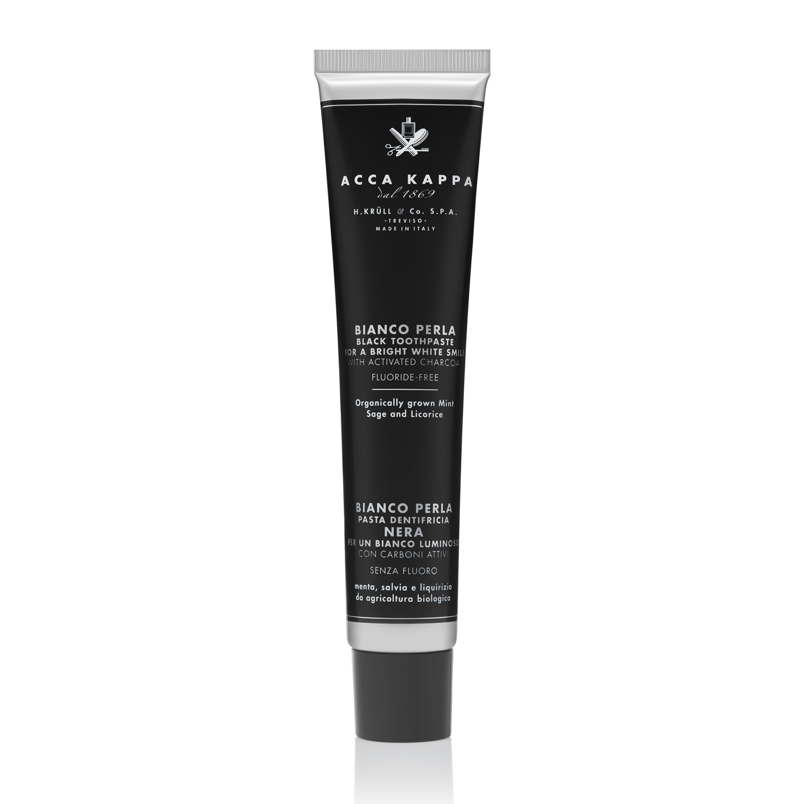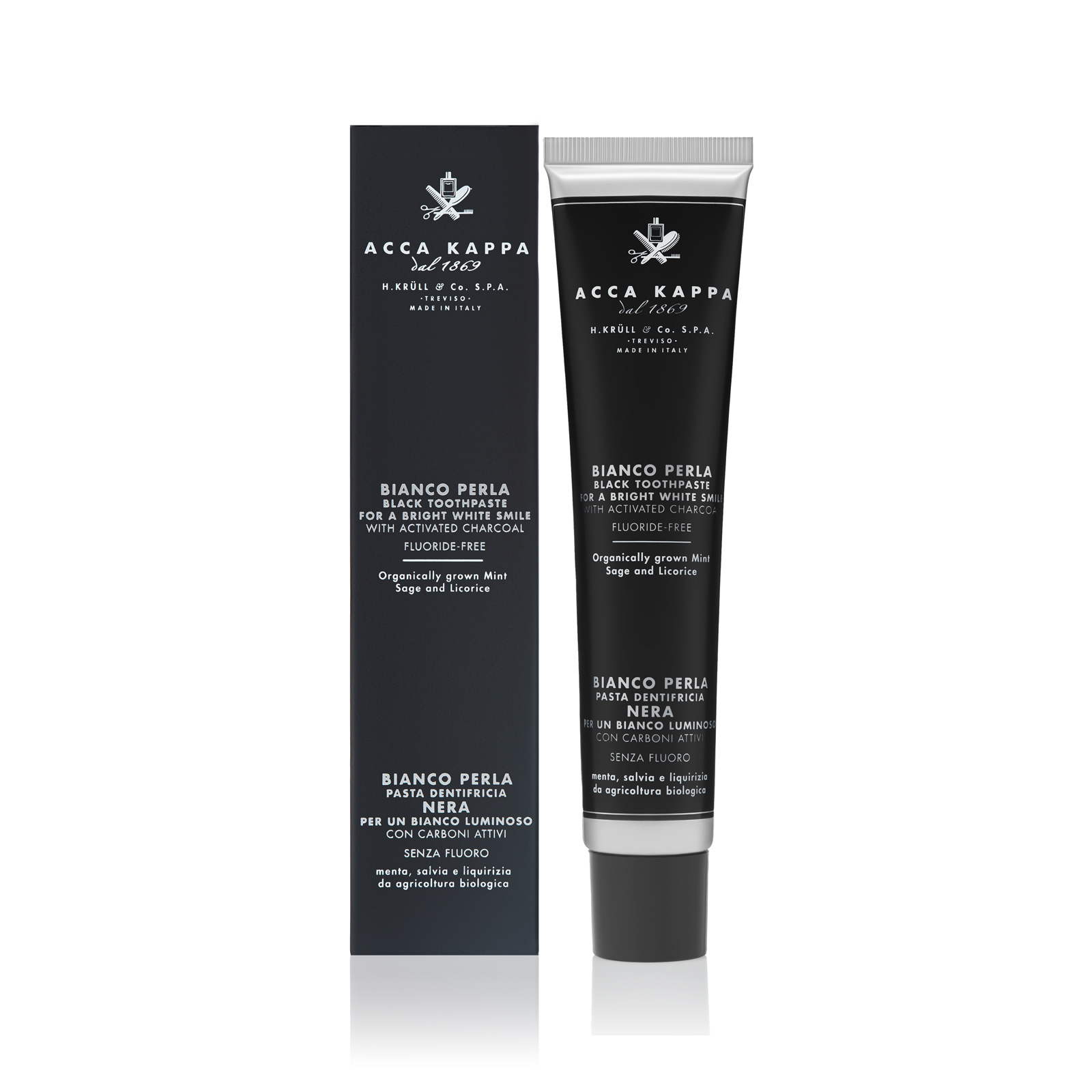 Благодаря активированному древесному углю зубная паста Acca Kappa сохраняет и усиливает естественную белизну зубов. Обеспечивает гигиену полости рта и профилактику кариеса. Не содержит фтора.