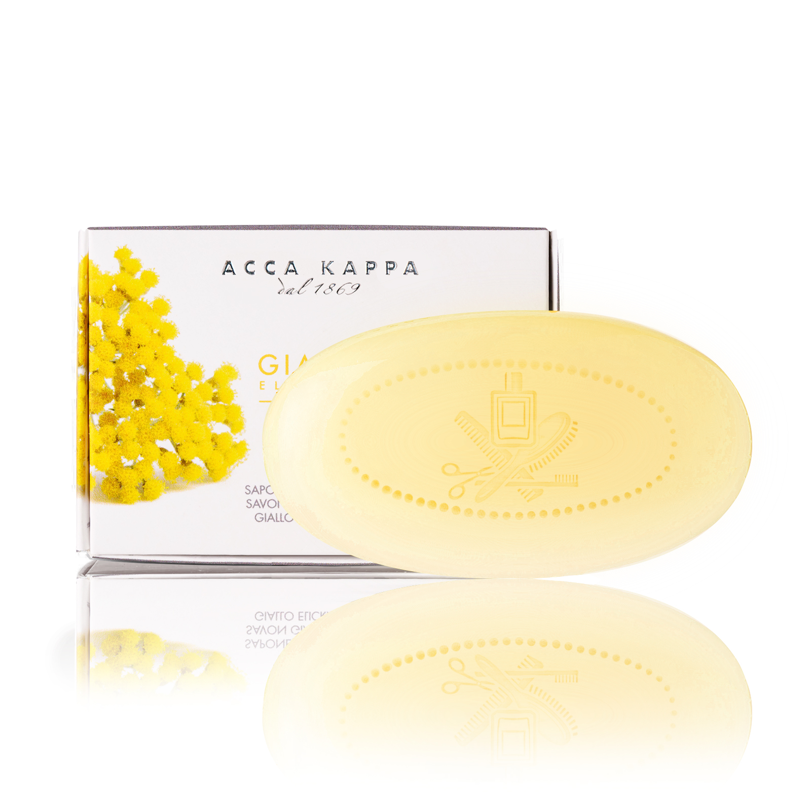 Из букета цветов бессмертника в сопровождении цитрона сорта Diamante, листьев фиалки, белого перца, мускатного ореха, кедра и ветивера мастера-парфюмеры создали Acca Kappa Giallo Elicriso: аромат, раскрывающий магию восточного Адриатического моря с его островами. Растительное мыло Acca Kappa производится из пасты, полученной в результате омыления чистых растительных масел, которые потом ароматизируются.